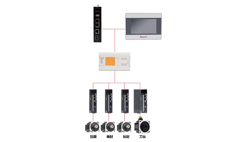 睿能X5系列PLC自帶追剪功能塊,可方便實現(xiàn)定長切割、跟標切割,切割精度可達到±1mm 。